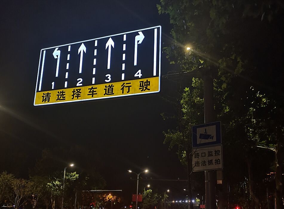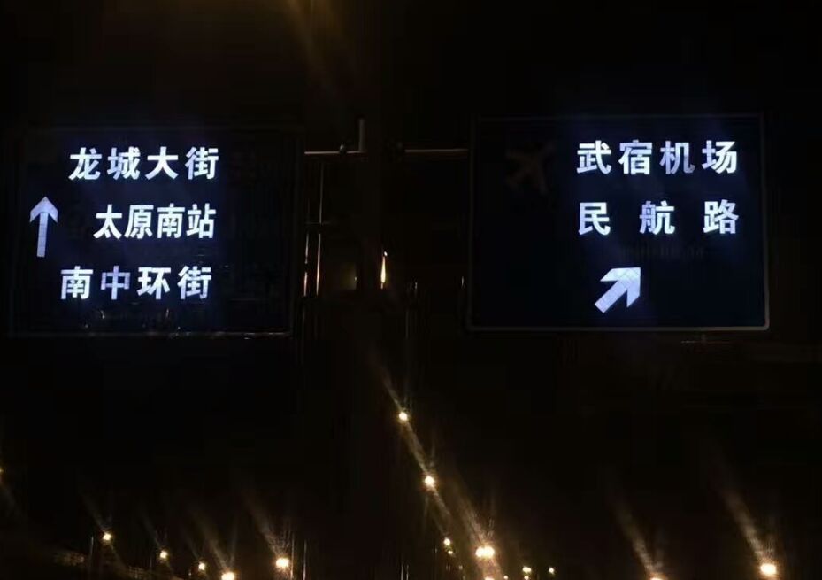 2017年6月,在濟南市安裝了一批面板顯示型主動發光標志,該標志采用內置全光源投射標志面層,標志面層發光部分采用進口設備鏤空無筋雕刻,光源穿透鏤空層的專用透光膜,形成面板顯示型主動發光效果,不僅增強了標志的遠距離視認性和大角度視認,同時也為區域交通環境做出了畫龍點睛的效果,為地區打造交通亮點,樹立城市示范大道,提供了創新元素。