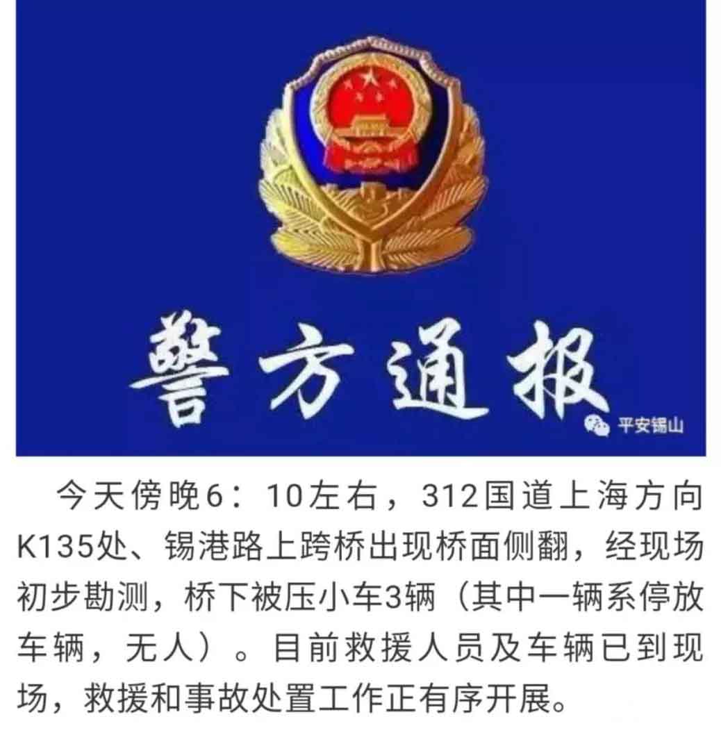 312國道無錫段某高架橋橋面側翻事故報道