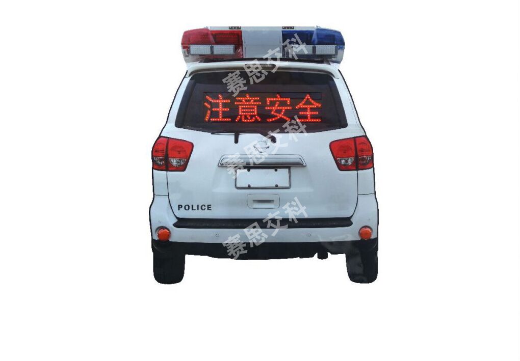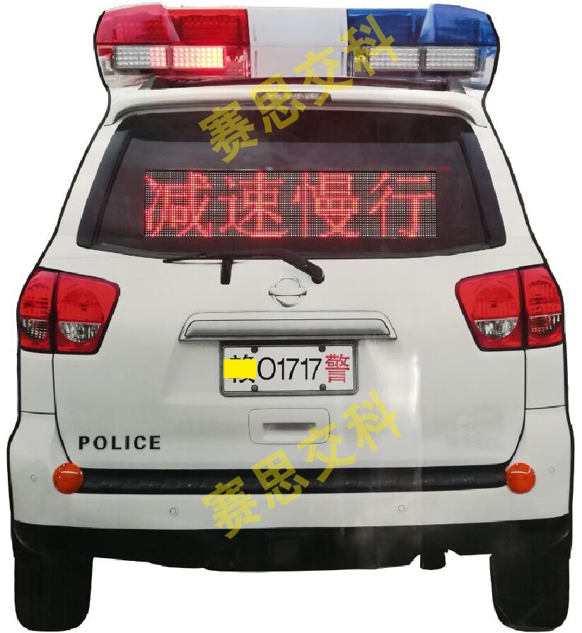 2、基本說明:標志面層為仿真等比例警車車尾UV噴繪圖案,面層采用鋁質(zhì)板材,標志圖案、字樣輪廓嵌入紅色高倍LED發(fā)光管,上置紅、藍暴閃燈,下方左右各置全紅剎車燈,中間“車窗”設(shè)置發(fā)光警示標語,整體結(jié)構(gòu)合理,用材精致。