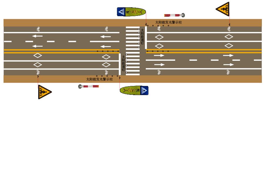 學校與市政道路相交,應當設置人行橫道線,指定學生過街通行軌跡,避免隨意橫穿馬路而導致交通秩序混亂,隱患叢生。人行橫道線兩端應配合設置人行橫道標志。若相交道路為次干路及以上,應當設置觸摸式信號燈,或設置太陽能移動式信號燈,早晚高峰自動開啟,可根據需要配置“一體式人行過街語音提示樁”,對闖紅燈的行人給予語音警示。雙向車道為3車道及以上,應考慮設置行人二次過街駐足島,可采用硬性隔離,并配合施劃地面標識。