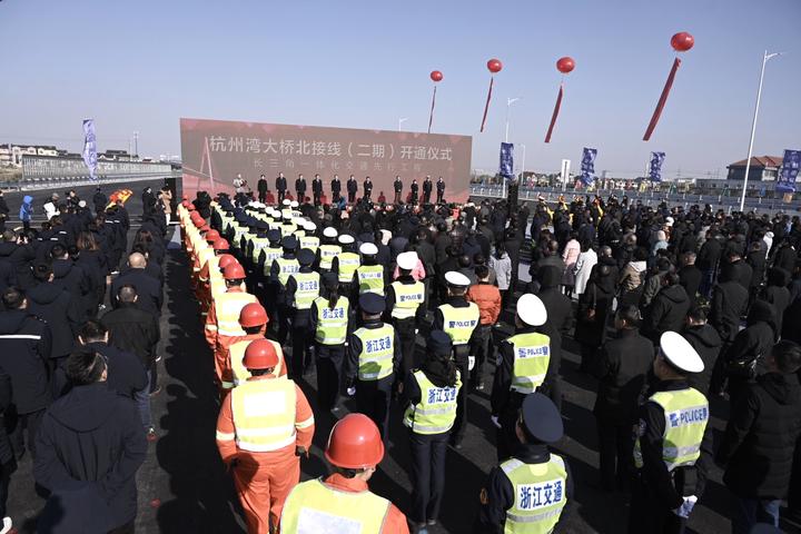 今天上午,灣北二期開通儀式在汾湖主線站區(qū)域舉行,長三角生態(tài)綠色一體化發(fā)展示范區(qū)執(zhí)委會(huì)、江蘇省交通運(yùn)輸廳、蘇州市人民政府、浙江省交通運(yùn)輸廳、浙江省高速交警總隊(duì)、上海市交通委綜合交通處等相關(guān)領(lǐng)導(dǎo),市委書記張兵,市委副書記、市長毛宏芳,市人大常委會(huì)主任劉冬生,市政協(xié)主席高玲慧等出席活動(dòng)。張兵宣布杭州灣大橋北接線二期正式開通!