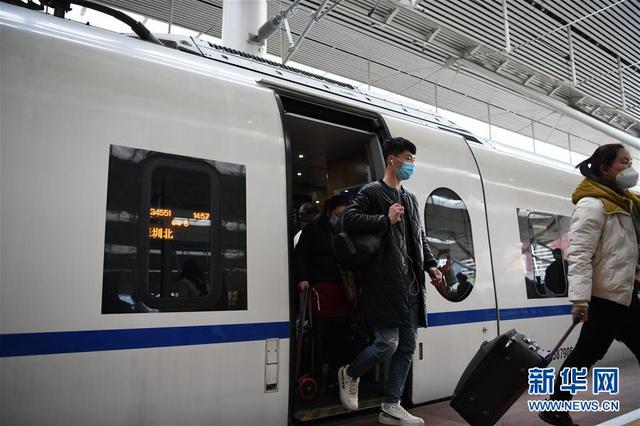 3月5日,在深圳北站,抵達深圳的務工人員陸續下車。 新華社記者 梁旭 攝