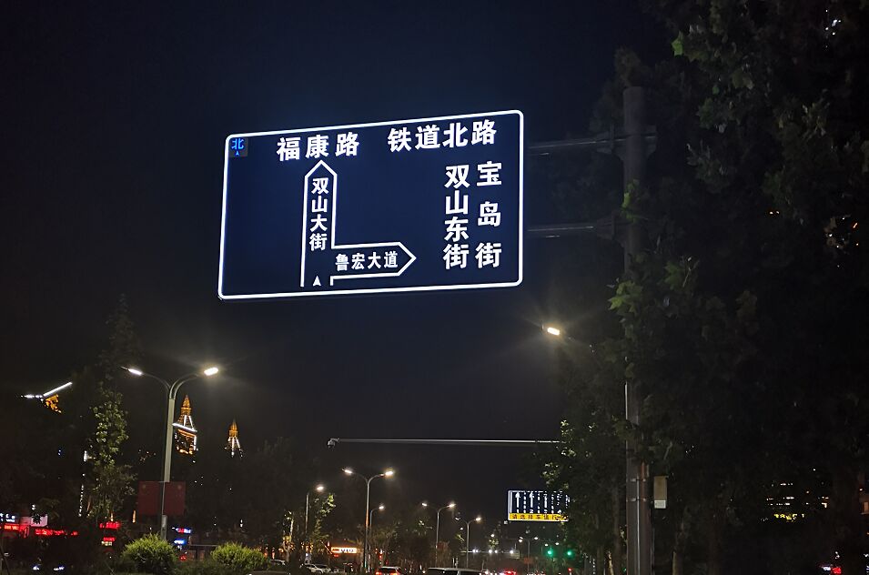 鑒于視認性能的考慮,建議指路標志優先采用半透型主動發光標志,禁令和警告 標志可選用全透型主動發光標志。
