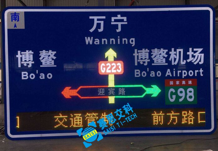 2、標志版面整體采用主動發光技術,路網框體部分嵌入三基色LED光帶誘導屏體。