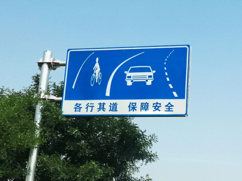 (一)標語為:“各行其道、保障安全”。適合于機、非車道無硬性設施隔離場景。