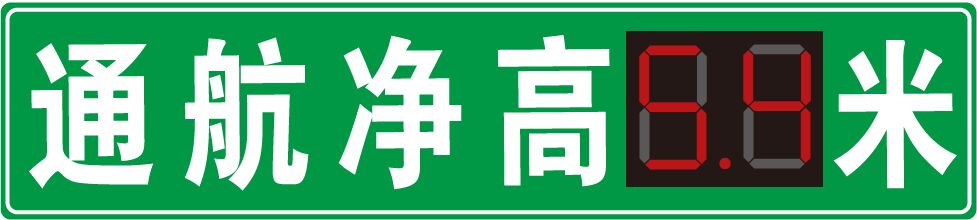 船舶準(zhǔn)備通行橋梁、管道等跨河建筑物時,需提前獲知橋梁底沿與航道水面之間的高度,又稱“航道凈高”,以保證能安全通過橋梁下方航道,各級航道所必須的通航凈高在國家頒布的通航標(biāo)準(zhǔn)中均有規(guī)定,隨著航道水域出現(xiàn)的“漲潮期”、“枯水期”,航道凈高數(shù)值也是動態(tài)變化的,所以作為橋梁設(shè)計、管養(yǎng)方,為橋梁安裝能動態(tài)顯示通航凈高數(shù)值的發(fā)光標(biāo)志牌,能有效保障航道的通行安全,本次設(shè)計的“通航凈高動態(tài)顯示發(fā)光標(biāo)志”(下一:白天效果;下二:夜間效果)。