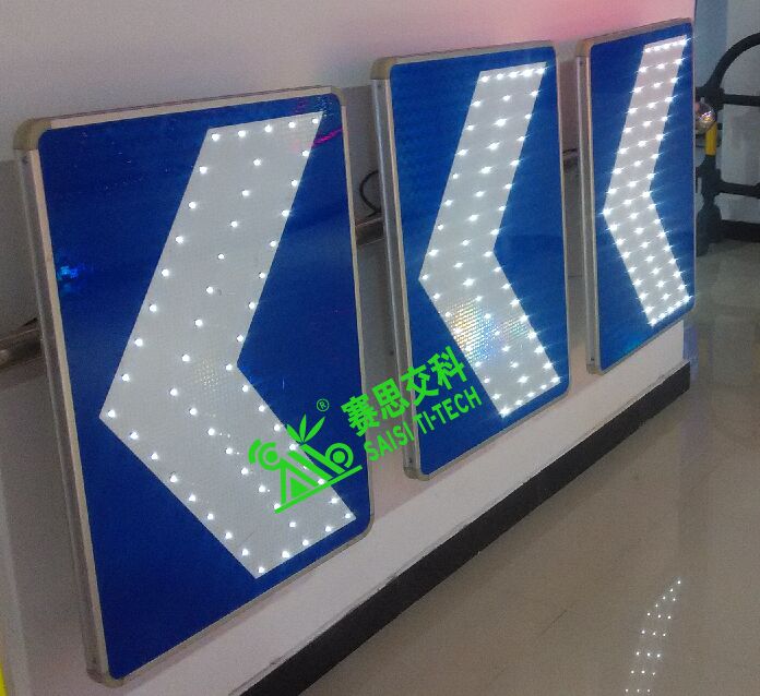 彎拖航道導向發光標志牌,主要應用于河流的彎道地區,用于引導船舶沿著河道線型選擇正確的行駛方向,通常設置于彎拖航道航道的大彎面、彎拖航道上橋梁的通航孔內側以及丁字交叉河口對應叉河口的岸上,依據國標《內河交通安全標志》(《GB13851-2019》),其版面為:600mm(寬)*800mm(高);版面圖案為:藍色底膜+白色箭頭。