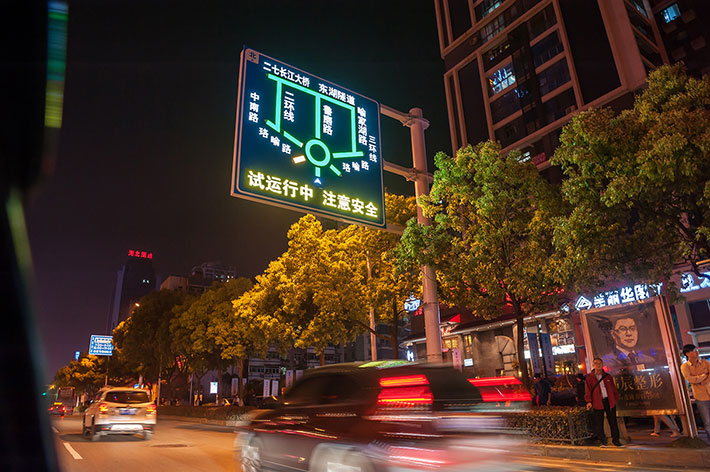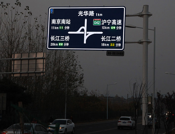 “全透明半透明發(fā)光標(biāo)志牌”,是一款常見(jiàn)的主動(dòng)發(fā)光標(biāo)志牌,其標(biāo)志面板層鏤空附著全透明或半透明材質(zhì),實(shí)現(xiàn)標(biāo)志內(nèi)部光源的外向透射,在標(biāo)志面板上呈現(xiàn)信息成像,增強(qiáng)標(biāo)志的清晰視認(rèn)效果,提升駕駛?cè)嗽趨^(qū)域交通環(huán)境中的駕駛體驗(yàn)感。