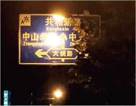 在逆光環(huán)境中,普通逆反射標(biāo)志幾乎無(wú)法辨認(rèn),而主動(dòng)發(fā)光標(biāo)志卻仍然具有很強(qiáng)的視認(rèn)效果。在我國(guó)東西方向的交通道路中,逆光對(duì)標(biāo)志牌的視覺(jué)影響特別嚴(yán)重。