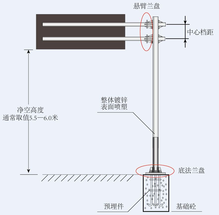 (3)桿件檔距設(shè)計(jì)(根據(jù)標(biāo)志高度而定),下圖為錯(cuò)誤的檔距設(shè)置圖例。