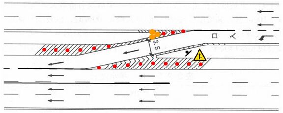 (2)應做到車道連續(xù)與平衡原則即快速路分合流處,應增加適當長度的輔助車道,同一條道路相鄰路段的基本車道數【道路在全長或較長路段內必須保持的車道數】每次增減不得多于1條,變化點應距離互通式立交500m至1km,并設漸變率不大于1/50過渡段。